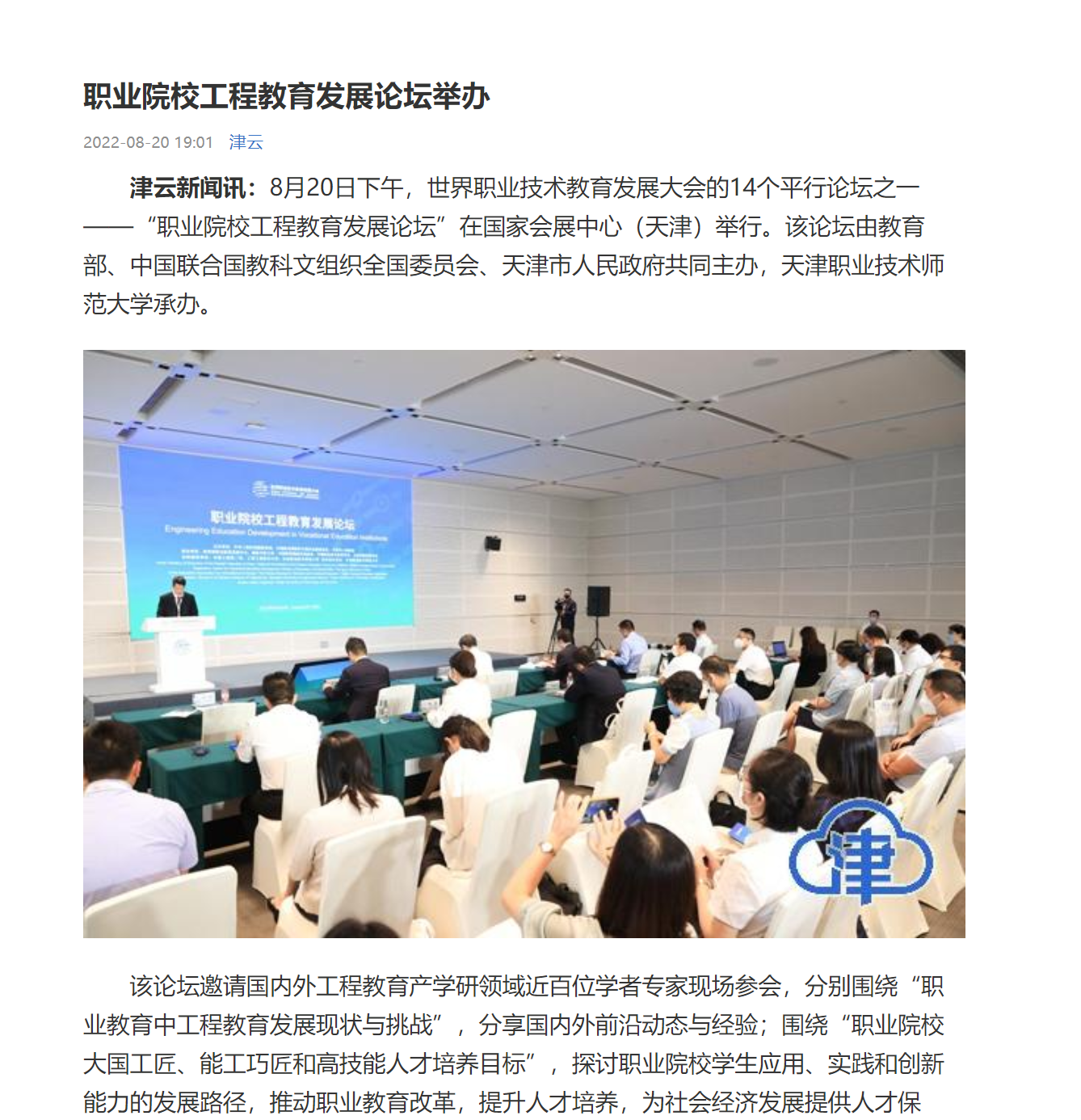 ”正在邦家会铺重心(天津)举办。该论坛由教导部、华夏团结邦教科文结构齐邦委员会、天津市群众当局合伙主持,天津工作技能师范年夜教启办。